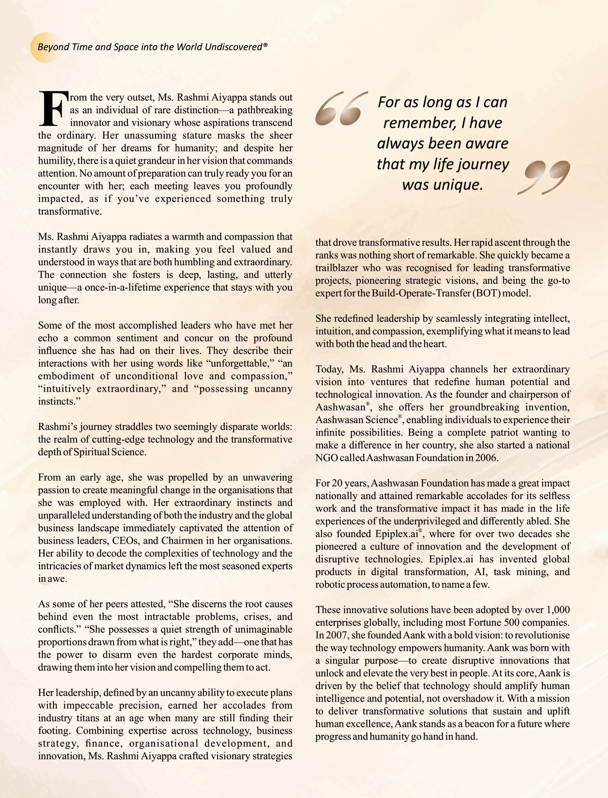 The vision presented here is about discovering an undiscovered world within.