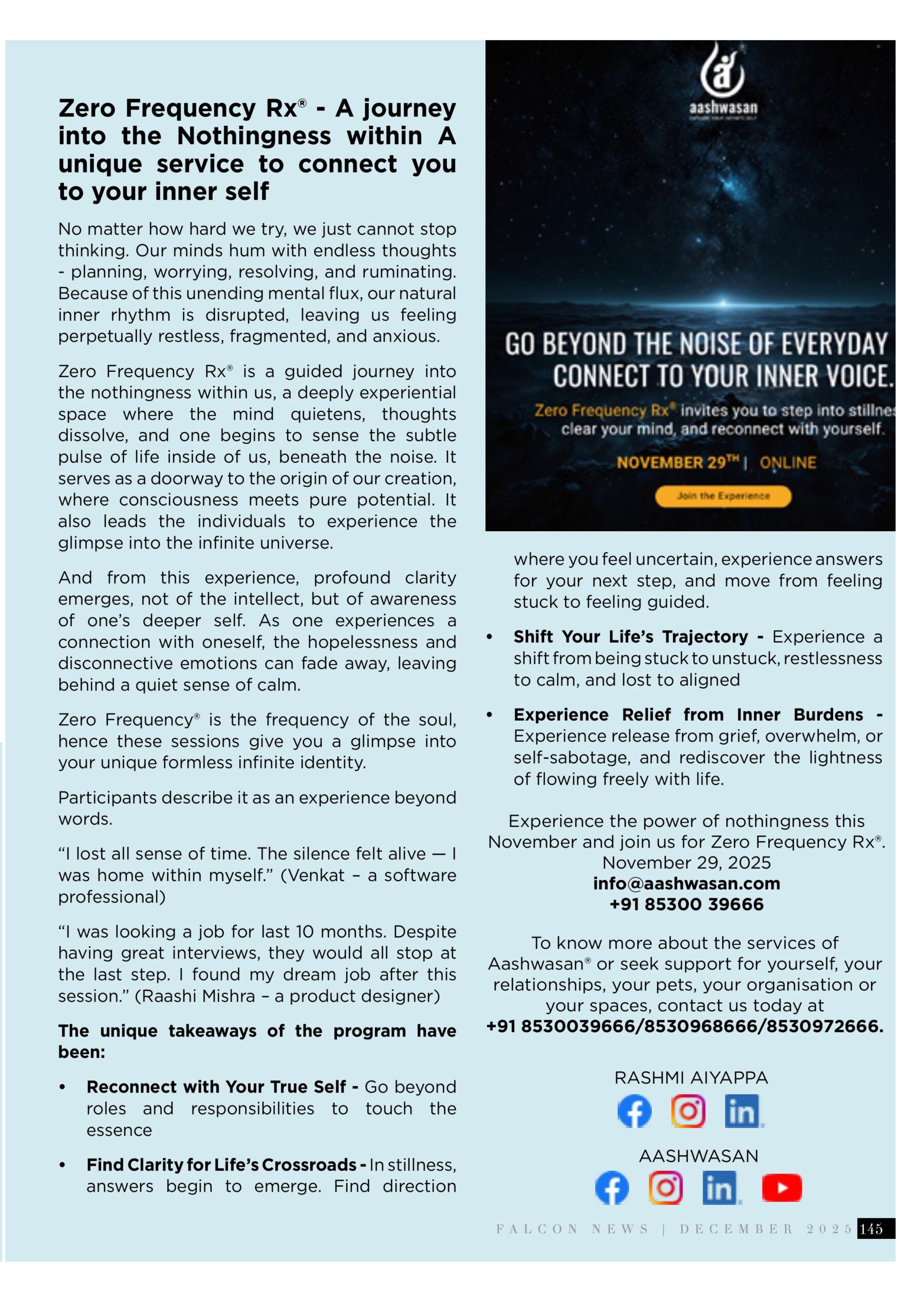 Another important aspect is “Zero Frequency Rx®,” which focuses on inner stillness and self-connection.